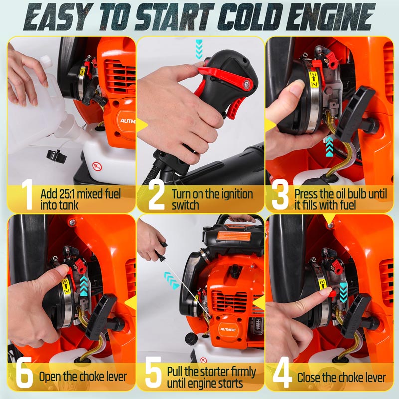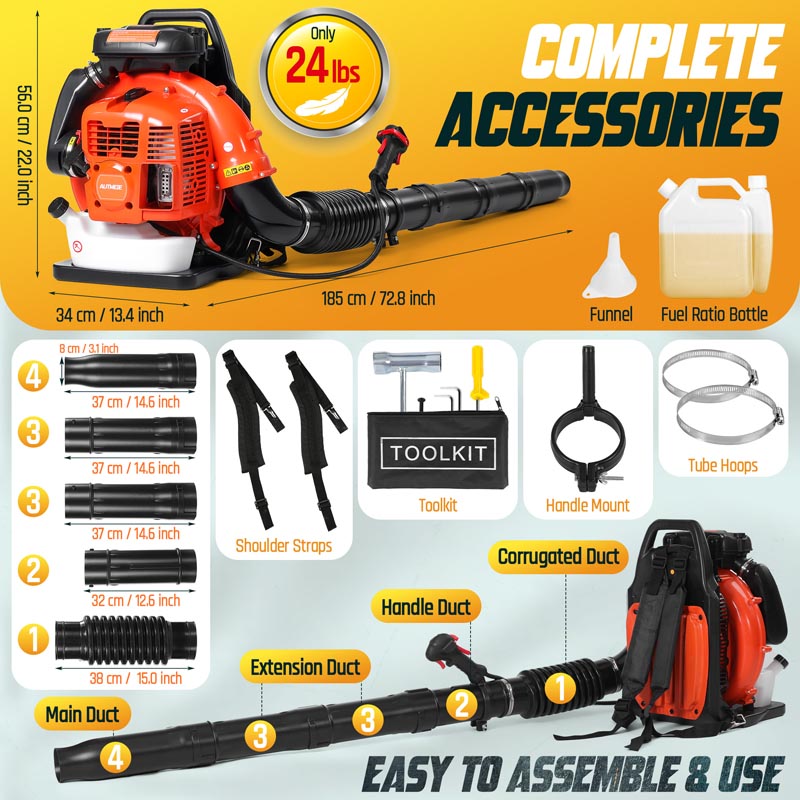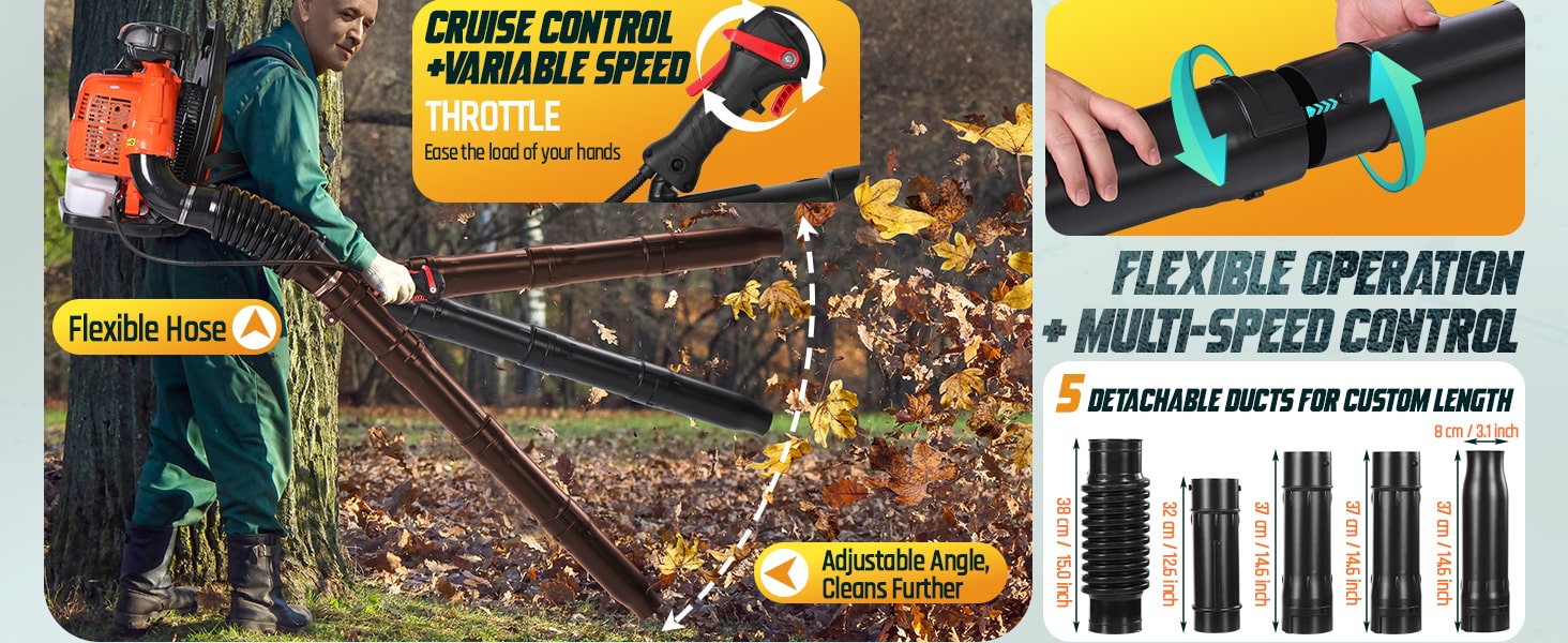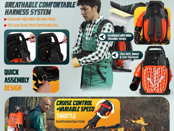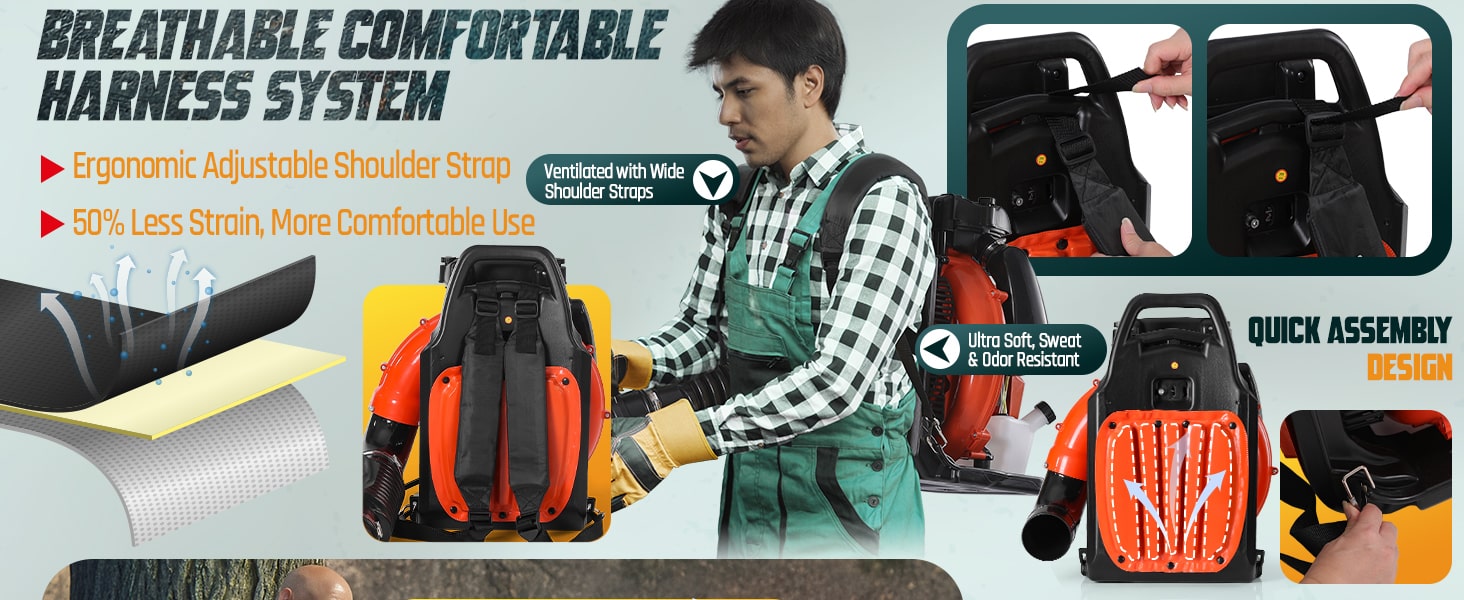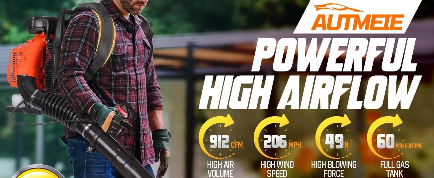 Power through any outdoor task with the 75.6CC gas-powered backpack leaf blower. With up to 912 CFM air volume and 206 MPH wind speed, it clears leaves, gravel, weeds, and snow in seconds. Work comfortably with the ventilated backpack harness and variable speed cruise control. The commercial-grade 2-stage filter keeps debris out and extends engine life. Durable, powerful, and professional, this backpack blower is perfect for yard, garden, driveway, or landscaping jobs!