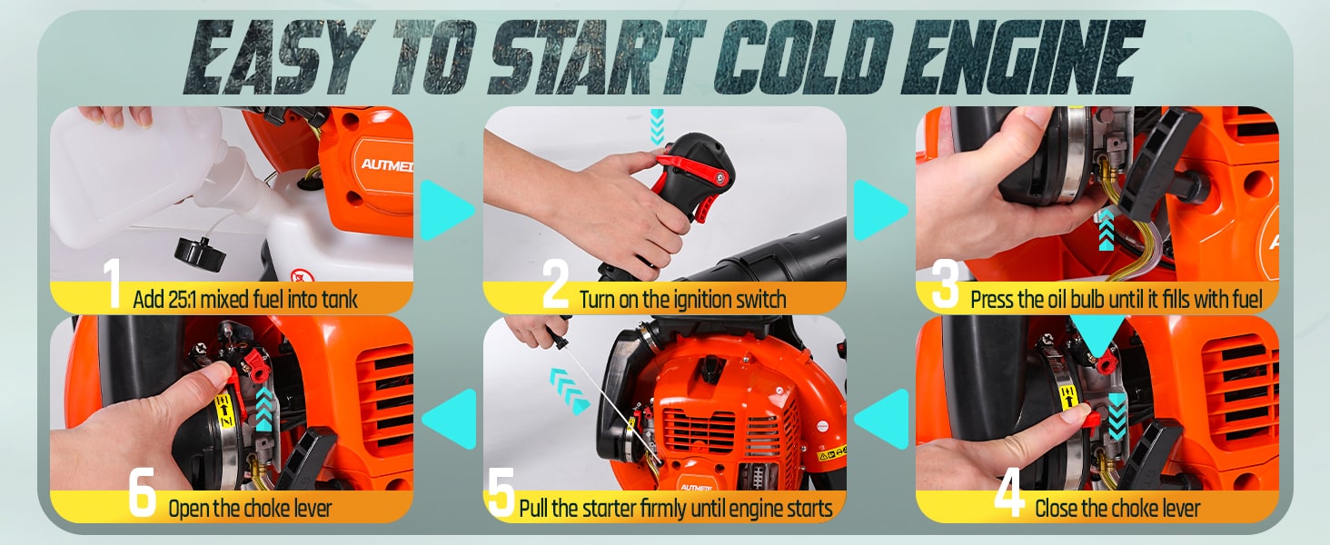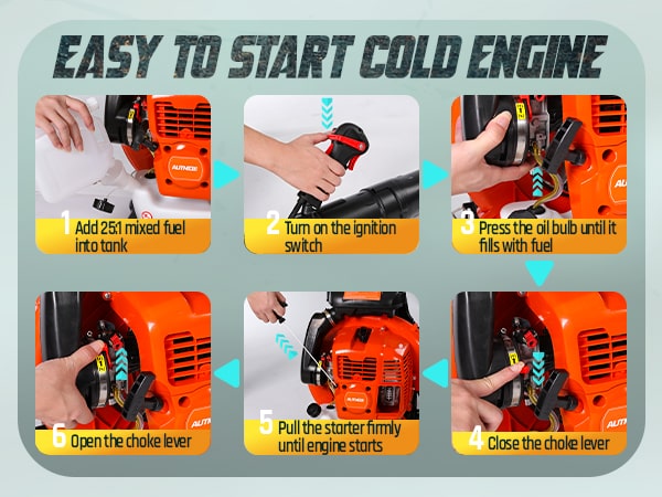 Our new machine requires a break-in period. During the initial break-in period, please operate it at medium speed for break-in, and avoid running it at the lowest and maximum speeds. And we recommend using a 25:1 fuel mix ratio (gasoline to 2-stroke engine oil) with the provided mixing bottle. After this period, 40:1 or 50:1 ratios are also suitable.