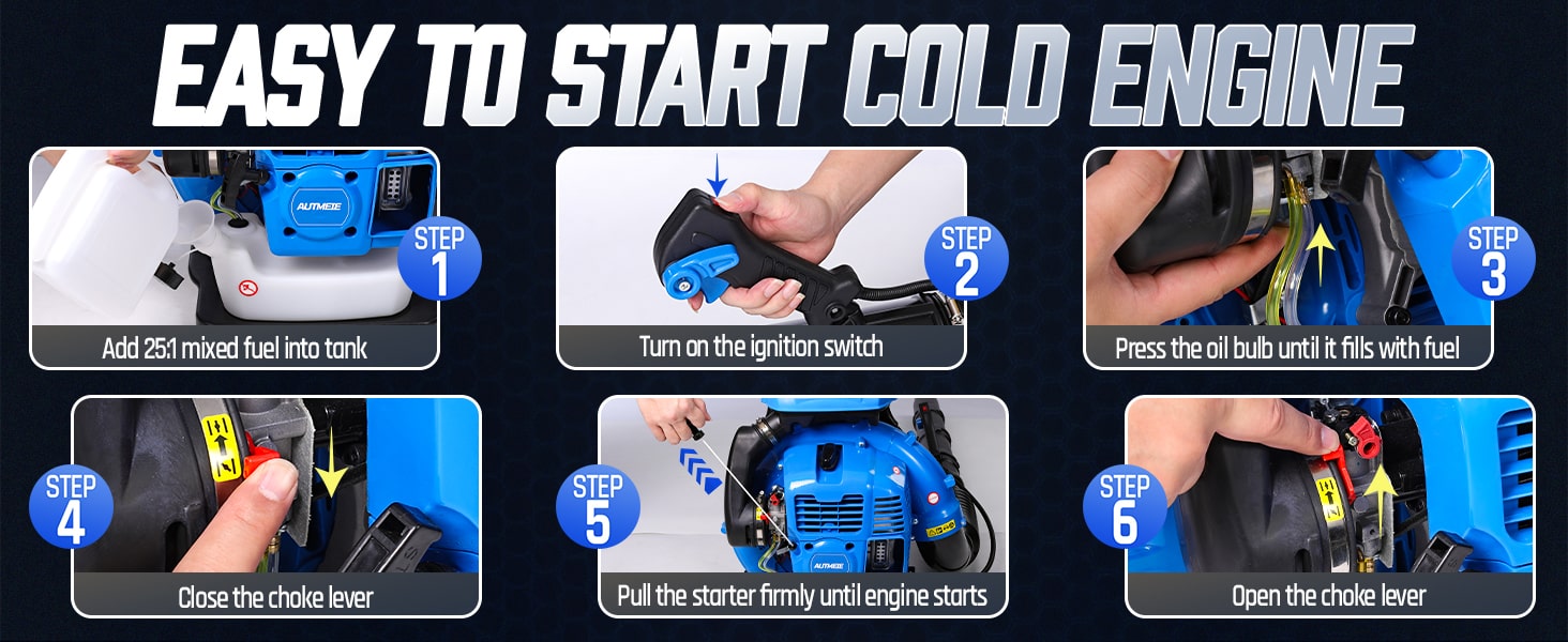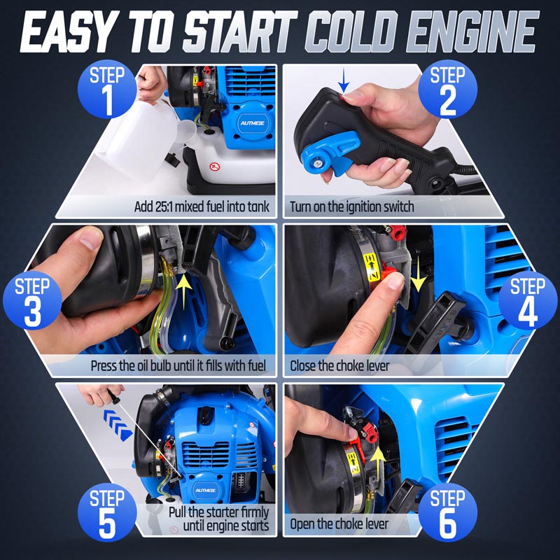Our new machine requires a break-in period. During the initial break-in period, please operate it at medium speed for break-in, and avoid running it at the lowest and maximum speeds. And we recommend using a 25:1 fuel mix ratio (gasoline to 2-stroke engine oil) with the provided mixing bottle. After this period, 40:1 or 50:1 ratios are also suitable.